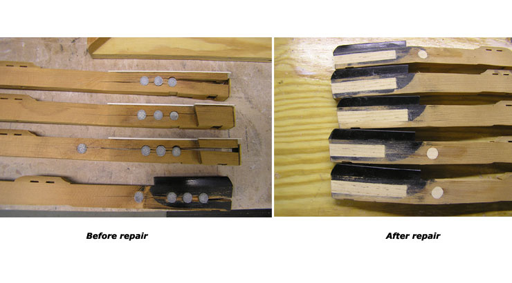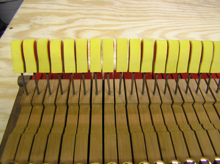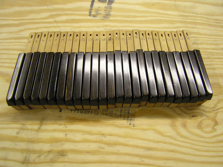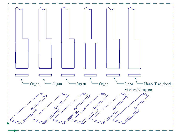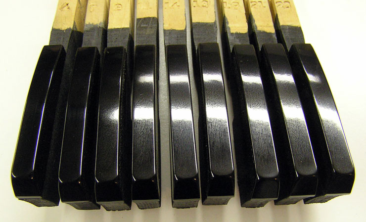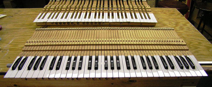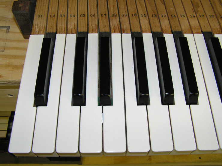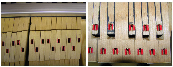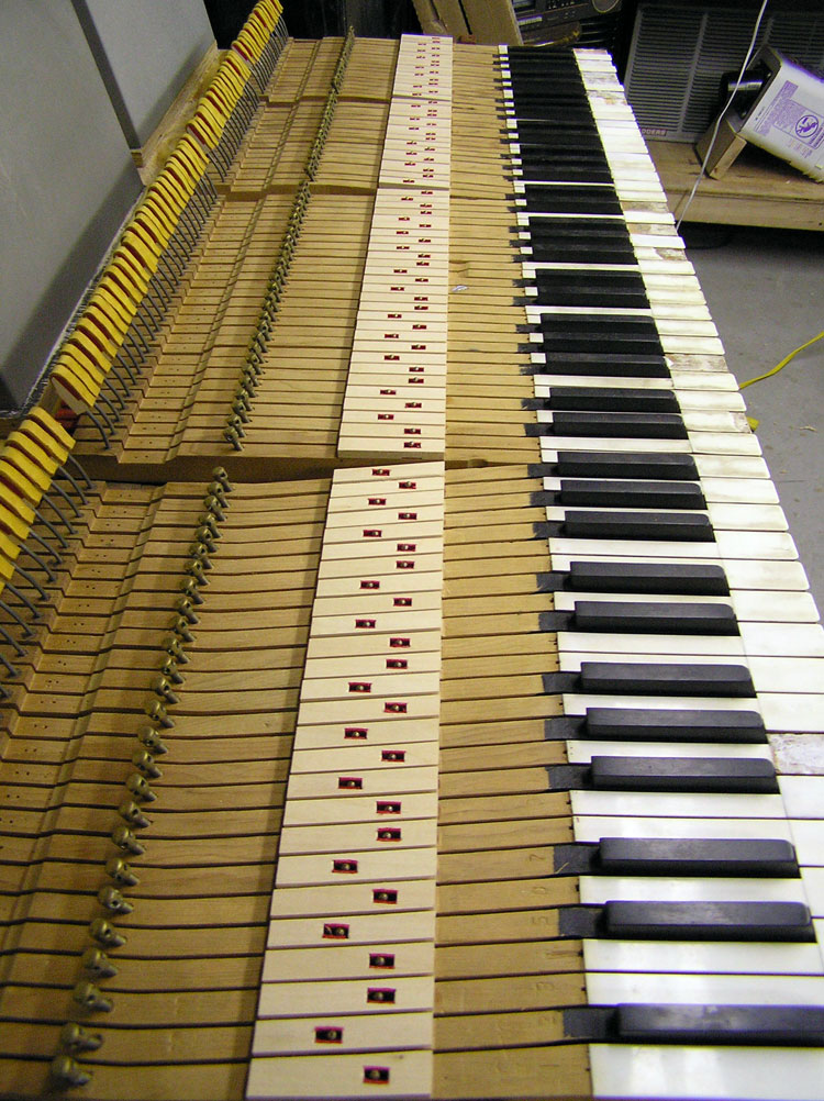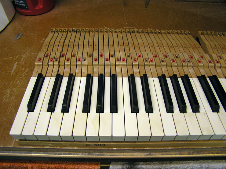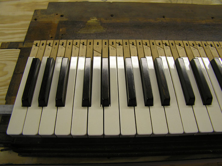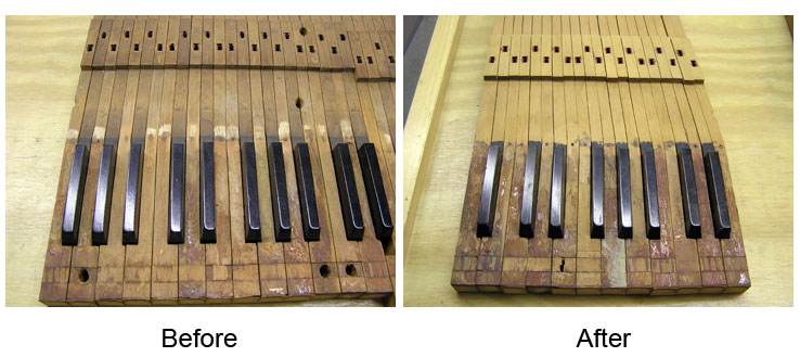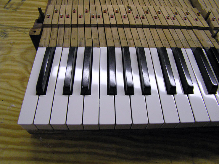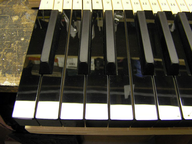 Services With our setup of Bridgeport milling machines and custom jigs and fixtures, the tolerances for cutting, fitting, and shaping are plus or minus a few thousandths of an inch! We can resurrect your keyboard by replacing tops, fronts, buttons, mortises, pins, and all associated cloth, felt, and leather as needed. This work properly done increases both the quality of the rebuild and its profitability. With less time spent on problems such as squaring, spacing, polishing, bedding, leveling, and regulating, your action work will also be less complicated. Our emphasis is on quality not quantity. Insurance Appraisal: We will assess damage to instrument keyboards. Blackstone Valley Piano provides the following services: Any services listed in RED text have a photograph of the service available to view.